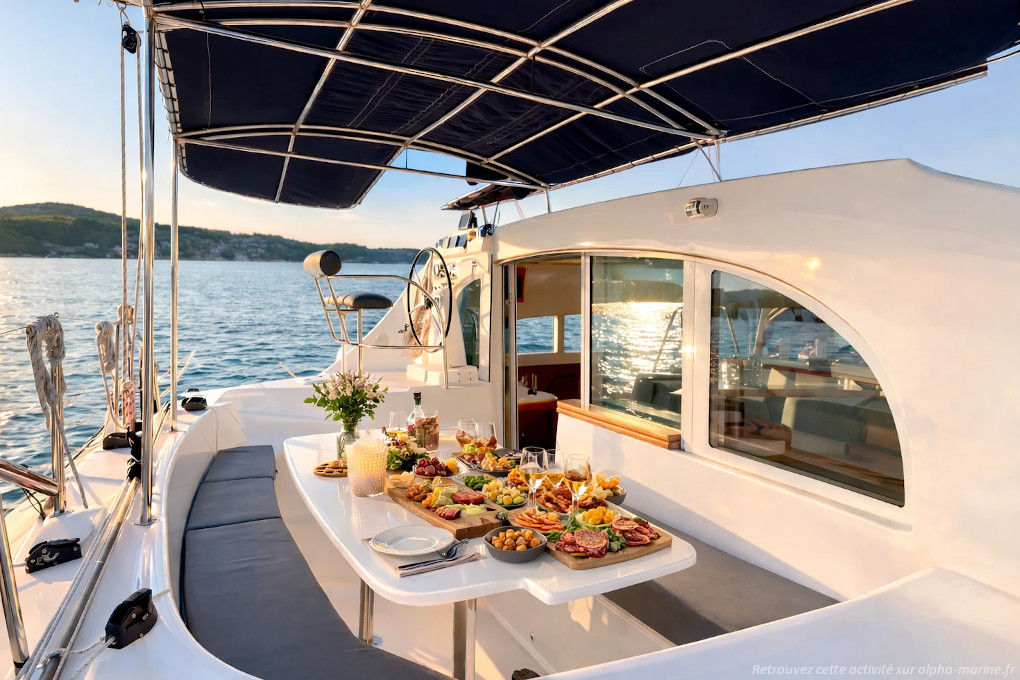 Au départ de Cannes, vous embarquerez à bord d'un catamaran spacieux et confortable mettant à votre disposition trois cabines doubles équipées. La quatrième cabine sera occupée par le skipper qui vous accompagnera tout au long du programme. Vous naviguerez vers un endroit calme et abrité à proximité des îles de Lérins et le bateau se positionnera pour passer une nuit au mouillage sous les étoiles. Vous pourrez improviser une petite baignade, des équipement de snorkeling et des serviettes de bain seront à disposition. Puis un apéritif sera offert à bord (boissons et une bouteille de rosé). Concernant les repas, des formules (payantes) sont proposées en option. Le matin, après un petit déjeuner au calme et loin du tumulte de la ville, vous rejoindrez le port de Cannes avec certainement une multitude de souvenirs à partager.