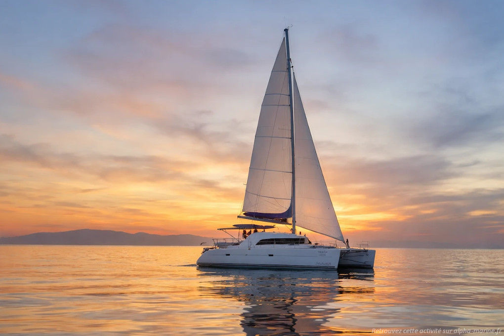 Au départ de Cannes, vous embarquerez en soirée pour une sortie à l'occasion du coucher de soleil. Le bateau rejoindra les îles de Lérins pour y trouver une belle place au mouillage, bien à l'abri. Vous pourrez admirer les magnifiques couleurs de fin de journée et profiter d'une pause baignade (équipements de snorkeling et serviettes de bain à disposition). Un apéritif convivial viendra agrémenter la sortie. Un moment hors du temps à partager en famille ou entre amis !